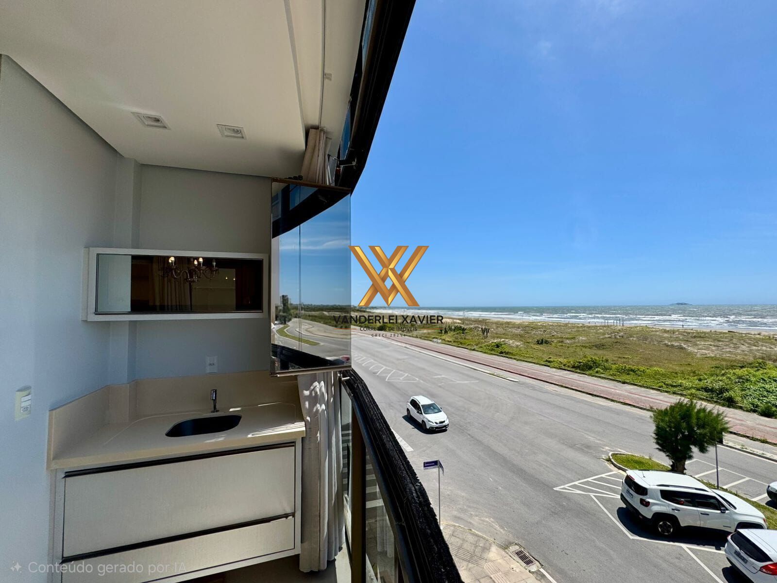 ✔️ Sacada integrada e fechada com vista para o mar